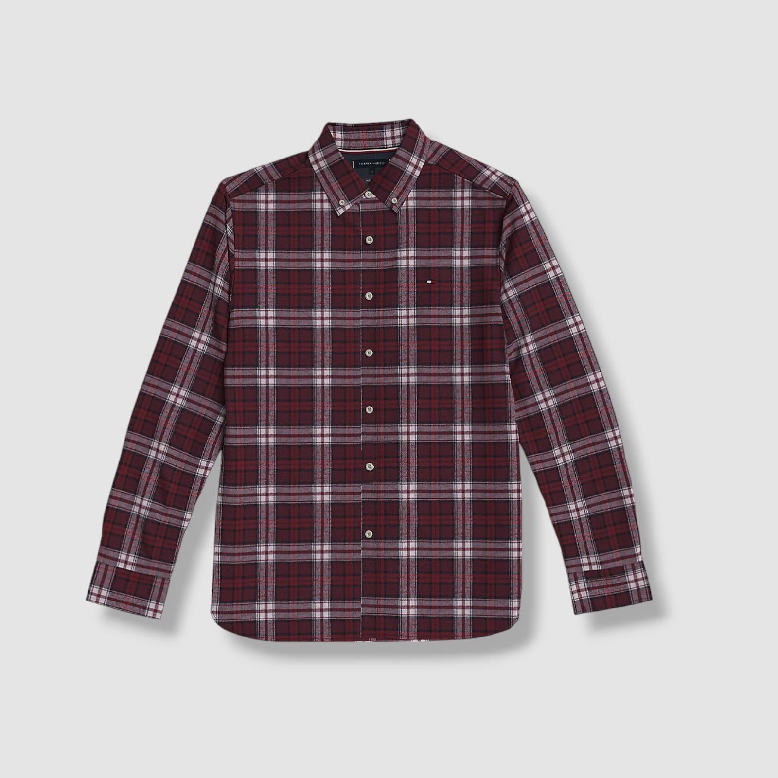 Tommy Hilfiger Men's Red Brushed Plaid Button-Down Shirt Size S 78JA086 601